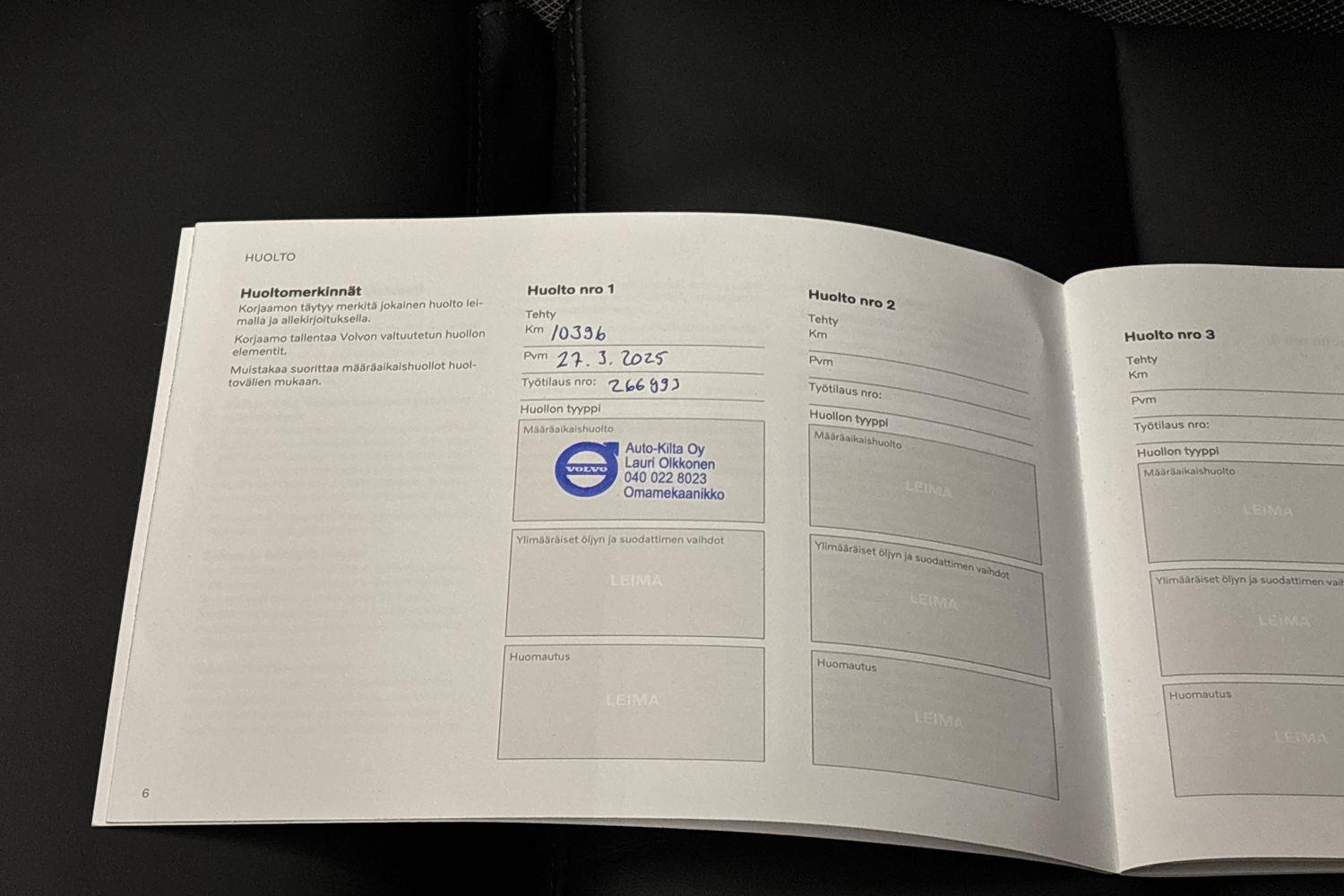 | Täydellinen merkkiliikkeen huoltokirja |