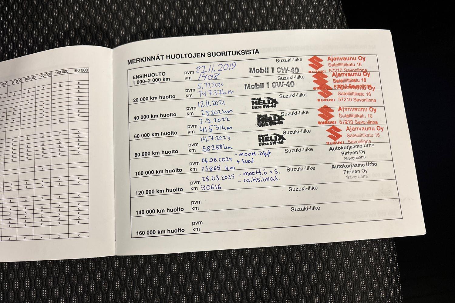 | Viimeisin huolto tehty 28.03.2025/90tkm |