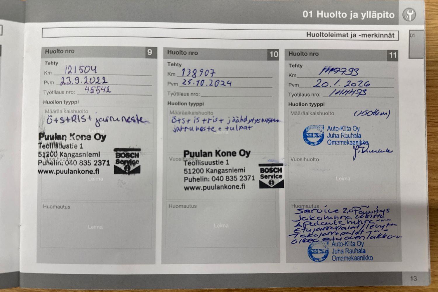 | Viimeisin huolto tehty 1/2026 |