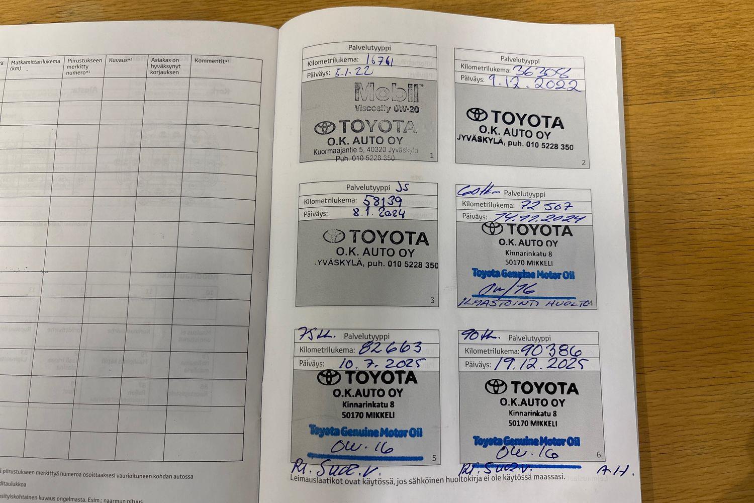 | Viimeisin huolto tehty 19.12.2025 / 90386 km. |