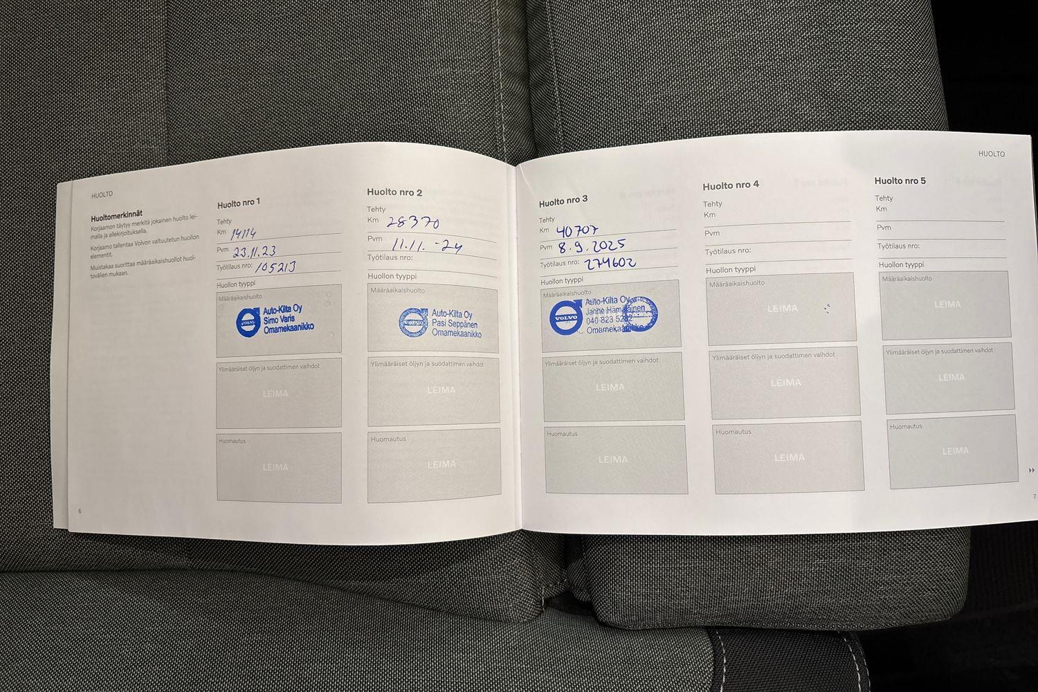 | Viimeisin huolto tehty 08.09.2025/40tkm |