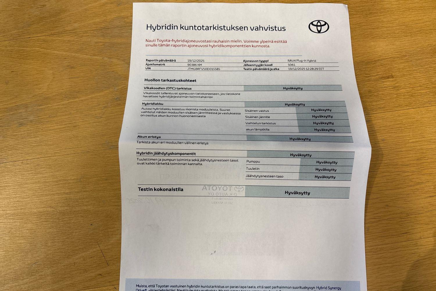 | Viimeisin huolto tehty 19.12.2025 / 90386 km. |